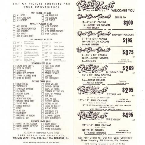 This List includes three You can Paint Kit Series' , may be the older of the two List of Subjects because it shows a lower price on the Premier and does not have 4 in 1 bush in instructions on back of list