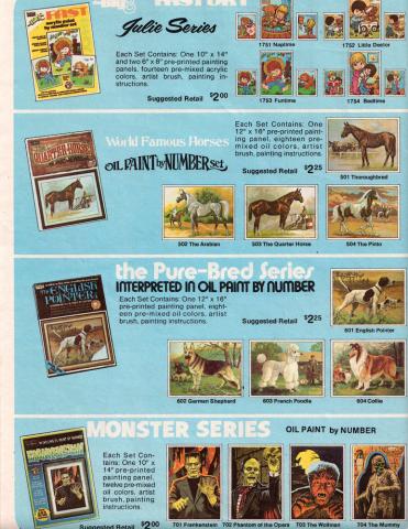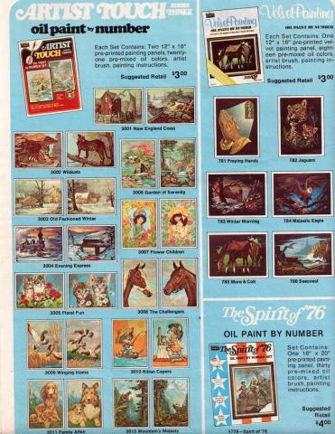 Kit series Spirit of 76 (16x20) Kid Stuff 401;3-6;8 Big 3 551-8 Big 3 Jungle 561-6 Artist Touch One 1001-12 Big Set Oil 581-6 Big 3 Fast Dry Julie 1751-4 World Famous Horses 501-8 Authentic Pure-Breds 601-4 Monsters 701-4 (10x14) Artist Touch Two 2001-12 Oil Paint by Number 801-6 Wildlife Seasons 901-4 Artist Touch Three 3001-12 Artist Touch Four 4001-6 Artist Touch Five 3Panel 5001-6 Last Supper 1973 Snoopy and His Friends 4071-4 Peanuts Gallery 5071-4 10x14 CraftHousePg1+INFO Number of pages 12 pages Manufacturer Craft House Manufacturer address 2101 Auburn Avenue , Toledo , Ohio 43696 Notes catalog has no date , but many of the kits in this catalog are copyright 1975 CraftHousePg2 Number of pages 12 pages CraftHousePg3 Number of pages 12 pages CraftHousePg4 Number of pages 12 pages CraftHousePg5 Number of pages 12 pages CraftHousePg6 Number of pages 12 pages CraftHousePg7 Number of pages 12 pages craftHousePg8 Number of pages 12 pages CraftHousePg9 Number of pages 12 pages zcraftHousePg10 Number of pages 12 pages zCraftHousePg11 Number of pages 12 pages zcraftHousePg12 Number of pages 12 pages PreviousNext