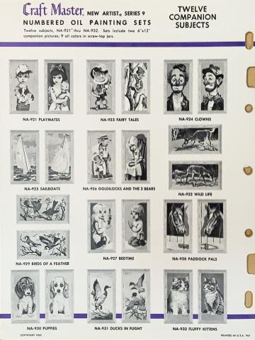 Kit series New Artist 9 921-32 New Artist 9 Number of pages 2 pages Manufacturer Craft Master Manufacturer address Toledo, Ohio Date 1967 Notes Wholesale catalog New Artist 9 Number of pages 2 pages Manufacturer Craft Master Manufacturer address Toledo, Ohio Date 1967 Notes Wholesale catalog PreviousNext