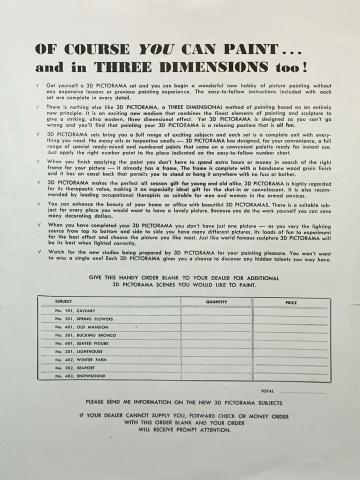 3D Pictorama Number of pages 2 pages Manufacturer 3D Pictorama, Inc. Manufacturer address 11 West 42nd St., New York 36, NY Date 1953