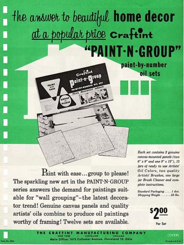 Kit series Paint -n- Group PG1-12 Paint-n-Group, Page 1 Number of pages 2 pages Manufacturer Craftint Manufacturer address 1615 Collamer Ave. Cleveland 10, Ohio Form number 5054 Paint-n-Group, Page 2 Number of pages 2 pages Manufacturer Craftint Manufacturer address 1615 Collamer Ave. Cleveland 10, Ohio Form number 5054 PreviousNext