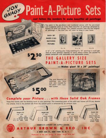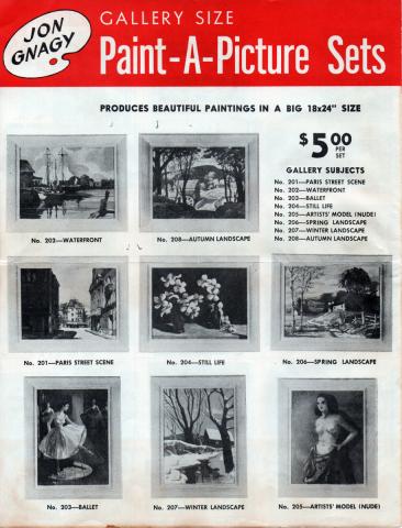 Catalog for standard Paint-A-Picture and Gallery Size kits, designed by TV artist Jon Gnagy