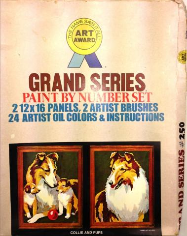 Kit series Grand Series G13;25-28;31;33;34;36-38;40 aCollieCover Manufacturer Art Award Manufacturer address North Bergen , N.J. 07047 Kit Contents two 12x16 panels , 24 oil colors Notes copyright 1974 The Art Award Co., Inc. Catalog on back of kit CollieBack PreviousNext