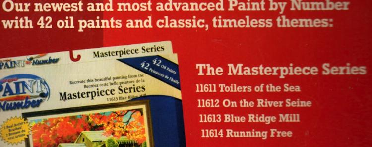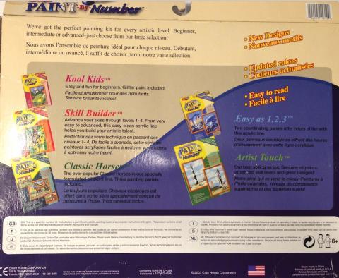 Catalog on back of Norman Rockwell kit , copyright 2003 Craft House Corporation on kit and panel