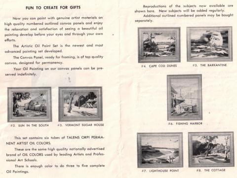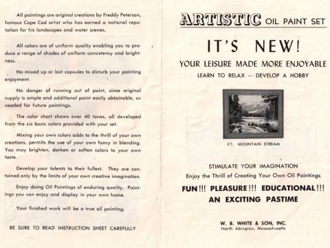 Catalog in kit - no date on kit - paintings are original creations by Freddy Peterson, famous Cape Cod artist who has earned a national reputation for his landscapes and water scenes.