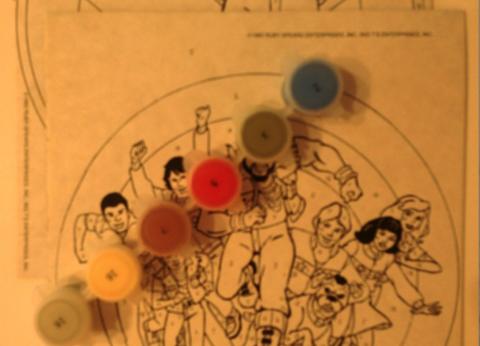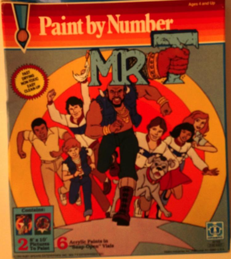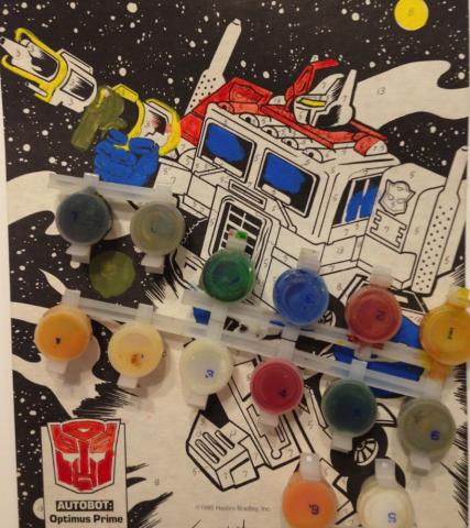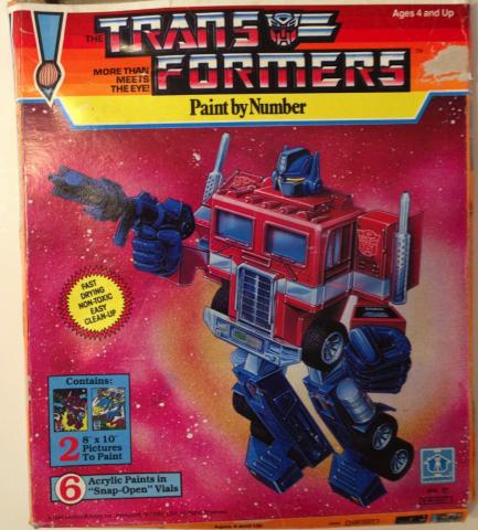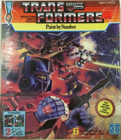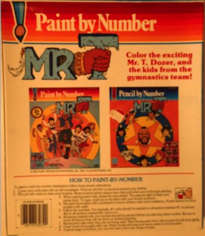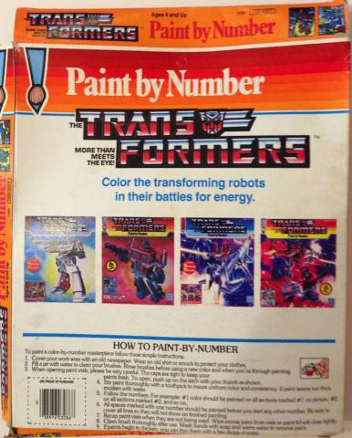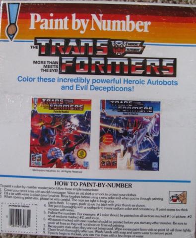 Catalog on back of kit , showing 2 PBN kits and 2 pencil-bb kits , copyright 1985 Hasbro Bradley Inc. on Trasformer kit , Copyright 1983 Ruby-Spears Enterprises, Inc/Big T's Enterprises ,Inc on Mt T kit