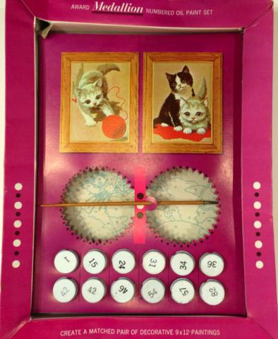 aaKittenCuties1405Cover Manufacturer Art Award Manufacturer address U.S.A. Kit Contents two 9x12 panels , 12 oil paints Notes Catalog on back of kit , no date on kit or panels