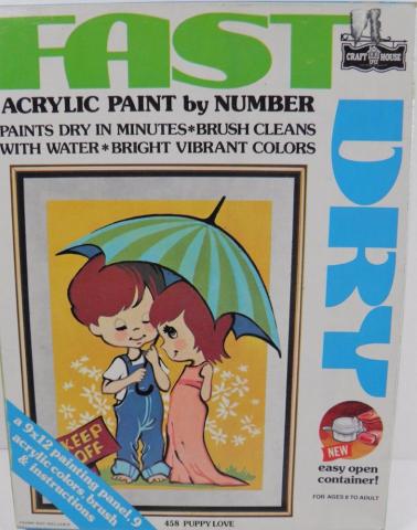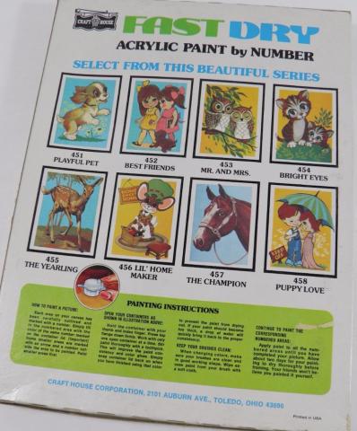 PuppyLove458Cover+INFO Manufacturer Craft House Manufacturer address 101 Auburn Ave. , Toledo , Ohio 43696 Kit Contents One 9x12 panel , 9 acrylic paints Notes Series of 8 kits , Catalog on back of kit