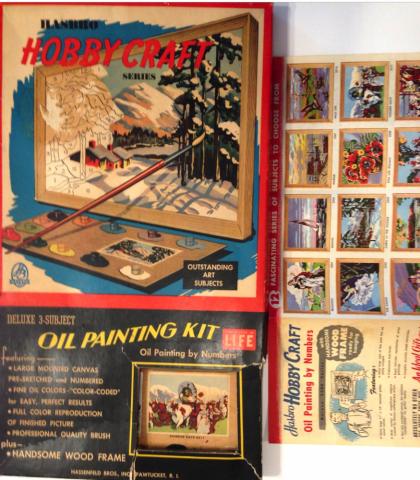Kit series Hobby Craft Deluxe 2Panels+Frame 11x14 FoxHunt2209+PioneerDays2211Cover Manufacturer Hasbro Manufacturer address Hassenfeld Bros. Pawtucket , RI Kit Contents two 11x14 panels , 24 oil paints ( 2 caps of each) Notes Although cover says 3Subject , the kit contains two 11x14 panels and 12 oil paints , cant tell if kits also contained two 4x4.5 canvases for each 11x14 foxHunt2209+PioneerDays2211KitContents PreviousNext