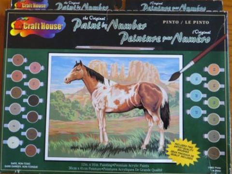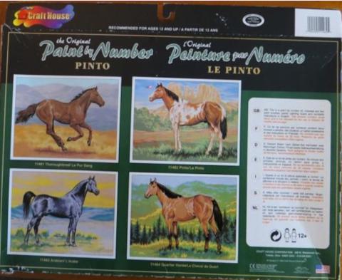 Pinto11462Cover Manufacturer Craft House Date 1999 Kit Contents one 12x16 panel , 21 paints Notes catalog on back of kit, copyright 1999 on kit