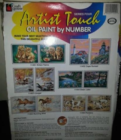 Kit series Artist Touch Four 11451-6 (12x16) RunningWild11455Cover Manufacturer Craft House Kit Contents two 12x16 panels , 21 oil paints Notes Series of 6 kits , catalog on back of kit RunningWild11455KitBack PreviousNext