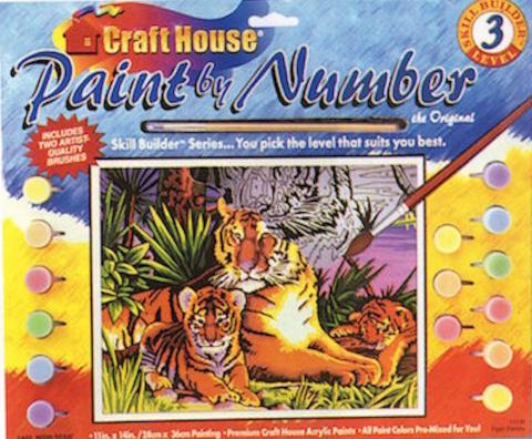 Kit series Skill Builder 3 1999 (11x14) TigerFamily11131Cover+INFO Manufacturer Craft House Manufacturer address 328 N. Woodward Ave , Toledo , Ohio 43607 Date 1999 Kit Contents one 11x14 panel , 15 acrylic paints Notes Series of 4 kits , catalog on back of kit , copyright 1999 on kit