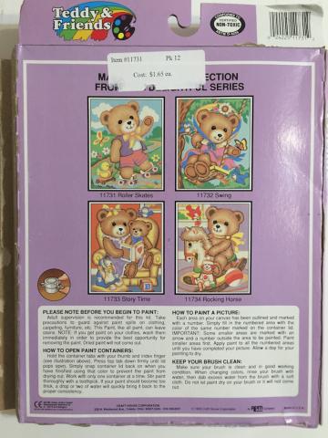 Kit series Teddy & Friends 8x10 RollerSkates11731Cover+INFO Manufacturer Craft House Manufacturer address An RPM Company , 328 N. Westowood Ave. , Toledo , Ohio 43607-3343 Date 1995 Kit Contents one 8x10 panel , 12 acrylic paints Notes Series of 4 kits , Catalog on back of kit , copyright 1995 on kit and panel RollerSkates11731KitBack rollerSkates11731Panel PreviousNext