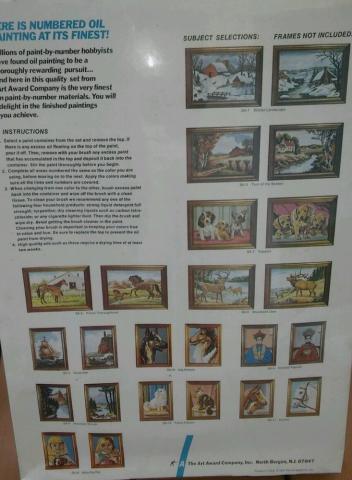 Kit series Silver Series SA-1-3;5-11;22;26 MountainStreamSA6Cover+INFO Manufacturer Art Award Manufacturer address North Bergen , N.J. 07047 Kit Contents two 10x14 panels , 16 oil paints Notes Series of 12 kits , catalog on back of kit , copyright 1974 on kit MountainStreamSA6KitBack PreviousNext
