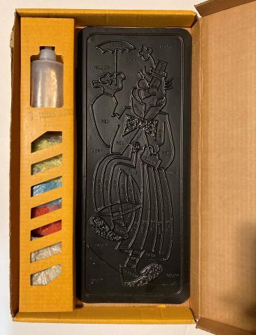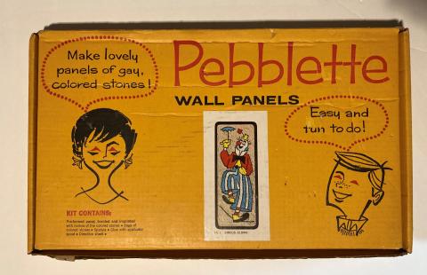 Pre-formed, imprinted panel, 5 bags of colored stones, spatula, glue and applicator
