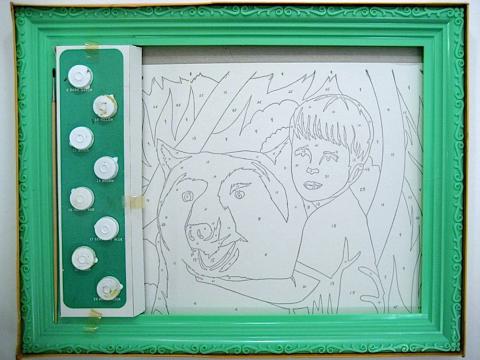 one 12x16 panel , 8 oil paints , one sculptured plastic frame