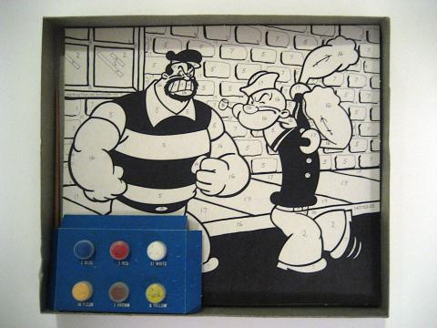 Later version of kit with two 8x10 panels , catalog on back of kit , copyright 1980 on kit , snap-open paint vials