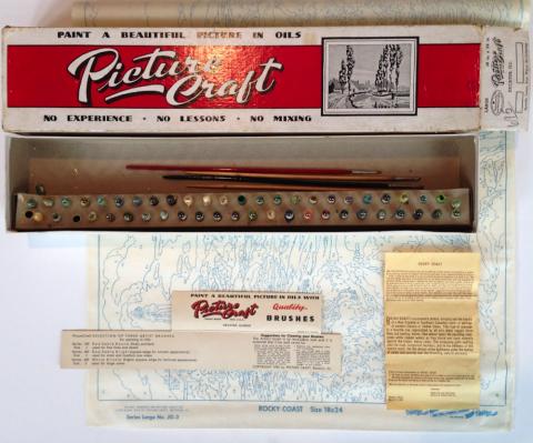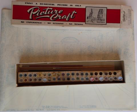 never version of paint containers, hard plastic screw on containers, copyright 1956 on canvas