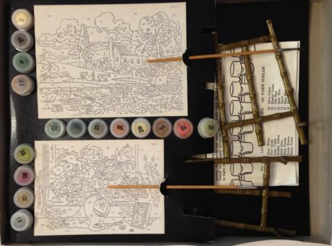 One 5x7 panel and one 6x8 panel , 12 oil colors, two easels