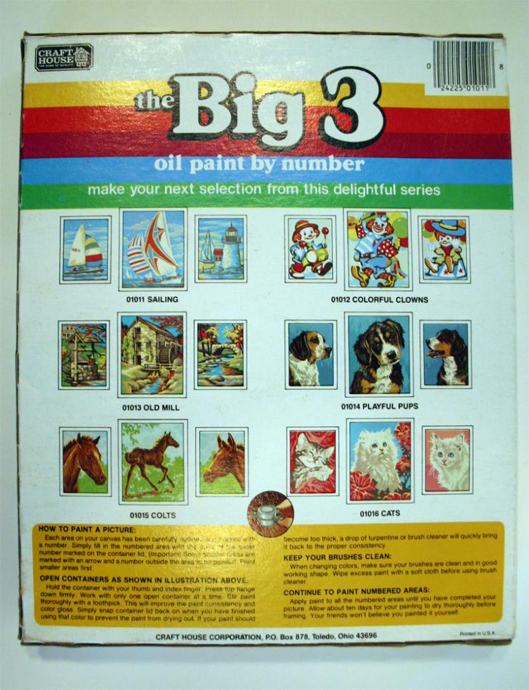 Big 3 01011-6 Dimensions 8.25x10.25x1 Manufacturer Craft House Kit Contents One 8x10 and two 6x8 panels, 9 colors