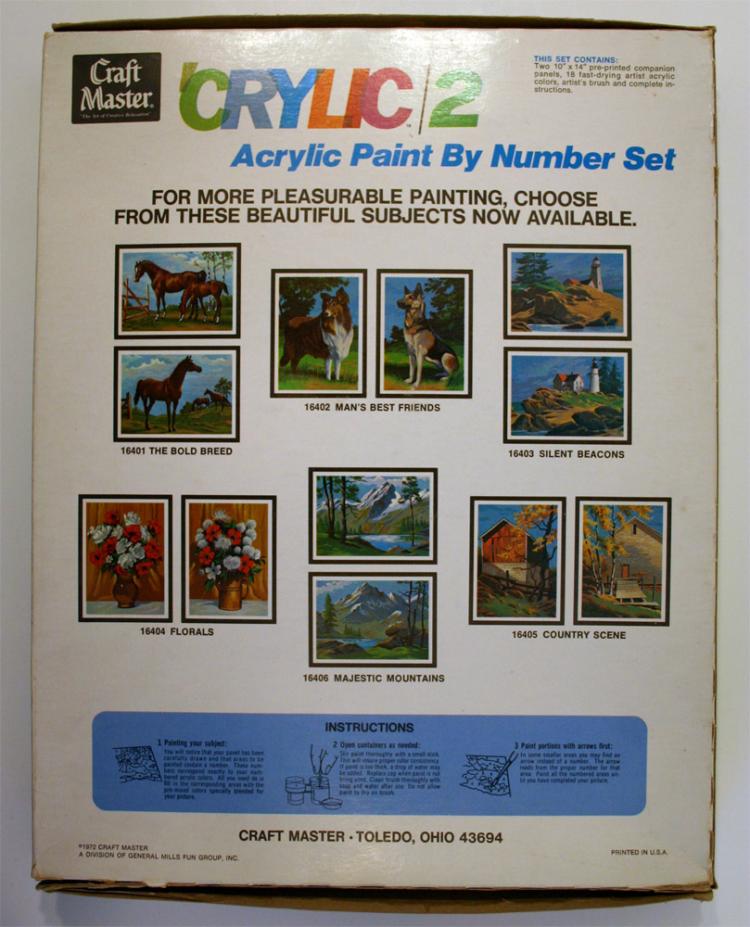 Crylic 2 16401-6 Dimensions 12x15x1.5 Manufacturer Craft Master Date 1972 Kit Contents Two 10x14 panels, 18 colors