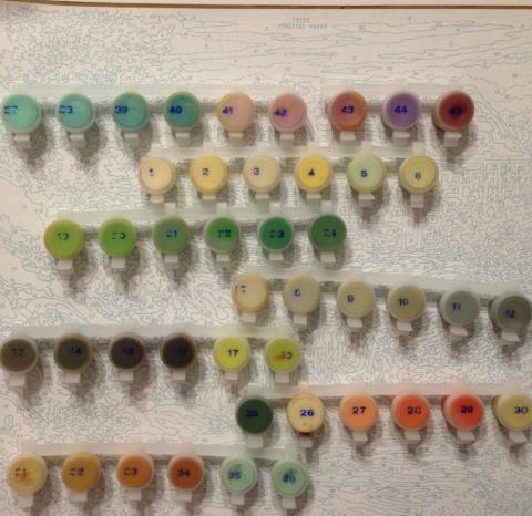 one 18x24 stiff flat canvas , 45 oil paints , "paint blending" instructions and practice
