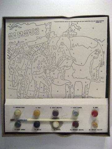 One 8x9 panel and one 8x9 panel to be cut into four 4x4.5 panels, 10 oil paints