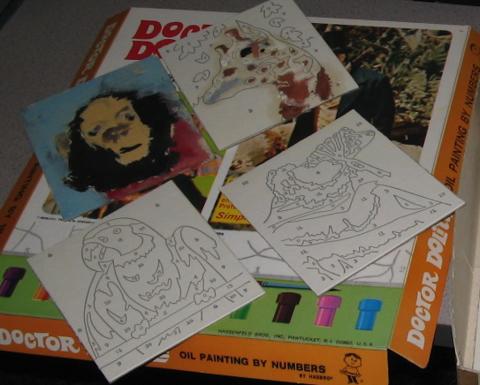 One 8" x 9" panel, Four 4" x 4.5" panels, 10 oil paints