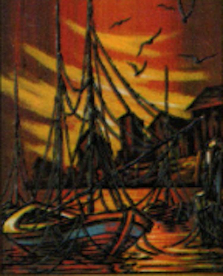 Size 9x12 Title Fishing Boats Manufacturer Hallman Kit series Textured Paint-by-Number 181501-12 Catalog number 18-15-01