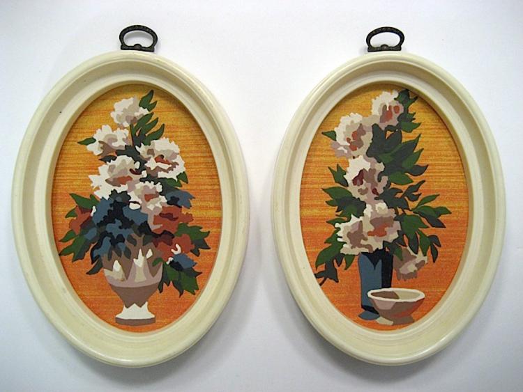 2 oval plastic frames, 2 matching pictures, 10 oil colors