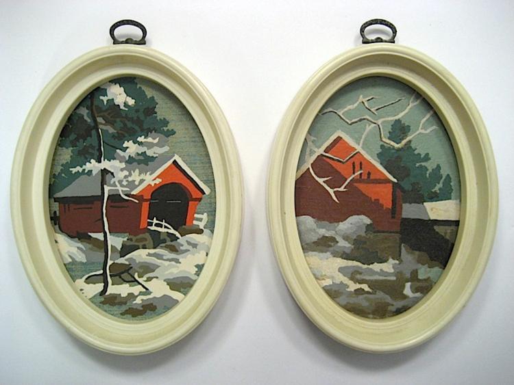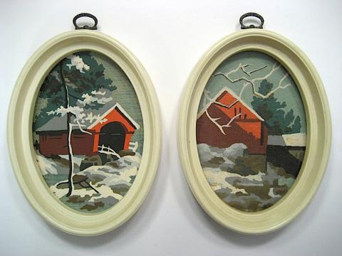 2 oval plastic frames, 2 matching pictures, 10 oil colors