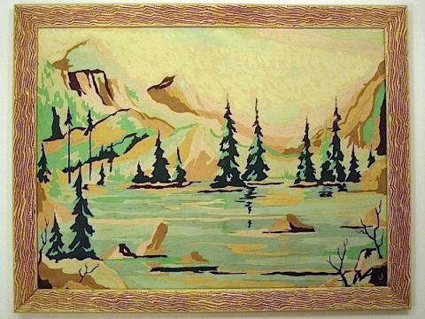 on canvas, no canvas info because borders cut off, stapled to frame, looks like Picturecraft frame looks like Gold master cut down?
