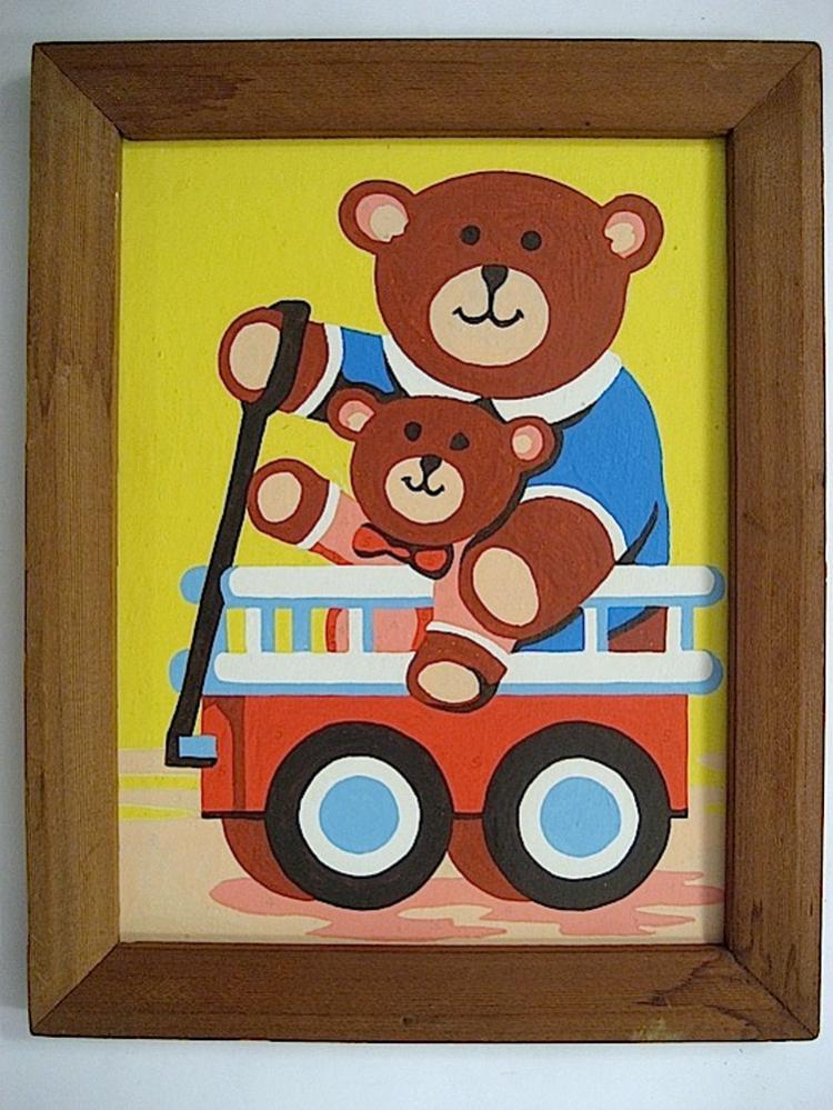 One 8x10 and two 6x8 related pictures, 9 oil colors