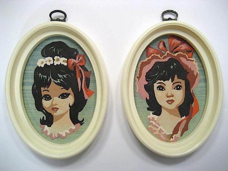 2 oval plastic frames, 2 matching pictures, 10 oil colors