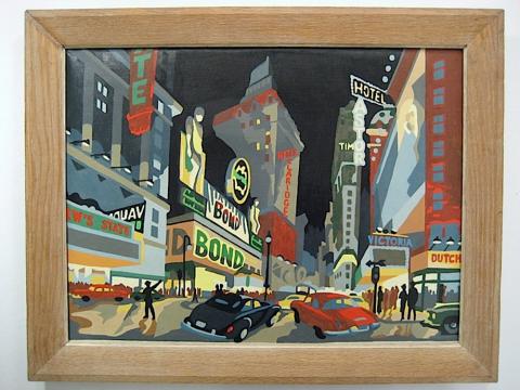 Huge billboards and the kaleidoscope of flashing lights stare down through the color-filled night upon the milling crowds of the big city.