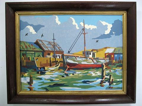 The long voyage is over and fishing boats with their cargo unloaded are riding high at their moorings in the placid harbor.