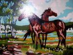Series of 12 kits , two 12x16 panels , 24 acrylic paints , copyright 1969 on panels , catalog on back of kit